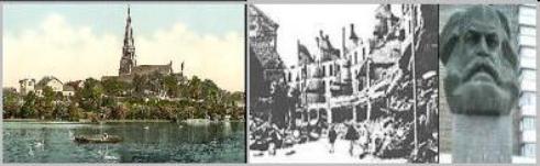 | Chemnitz is the third largest city in modern Saxony. It is located in the northern foothills of the Erzgebirge, it is named after the Chemnitz River, a small tributary of the Zwickauer Mulde River. An ancient settlement was located at the place of Chemnitz called Kamienica. In 12th century, there was a monastery at the place where the city now is, and a settlement grew around it. In 1170, it was granted the rights of an imperial city, and in 1307 it fell under the rule of the Margrave of Meissen. In medieval times Chemnitz became a center of textile production and trade, and by the early 19th century, rapidly growing Chemnitz had become an industrial center. Agricola Chemnitz had a pre-World War Two population of 370,000, larger than it has today. On February 15, 1945, Dresden and Chemnitz, both lying in the direct path of the advancing Russian armies, and Magdeburg, about seventy miles south-west of Berlin, were the main targets for devastating blows by over 3,600 planes of the R.A.F and the Eighth US Air Force so as to pave the way for the Red Army. 450 bombers attacked Chemnitz, while 400 went to Magdeberg and 450 to Dresden. The daylight bombing at Chemnitz absolutely devastated the city, destroying it almost completely. The old St. Wolfgang church in Schneeberg had an altar by Lucas Cranach, with 11 very important scenes, and also a bibliotech with priceless ancient manuscripts, including music scores of the miners' music. In 1945, low flying American bombers totally destroyed the church and the bibliotech. The altar was taken from the burning building and survived. The city then fell under communist rule and decayed further. In 1953, Chemnitz was renamed Karl-Marx-Stadt, and the city was rebuilt according to Communist principles, with prefab concrete housing blocks and streets adorned with heroic Soviet-style statues, including a huge head of Karl Marx. Very few pre-war buildings were restored. It returned to the original name of Chemnitz in 1990. The city of Chemnitz today is thought to have the lowest birth rate in the world. One remaining old landmark is the red tower, built in the late 12th or early 13th century as part of the old city wall. The old Renaissance Rathaus is still standing, as is the smallest castle in Saxony, Rabenstein. |