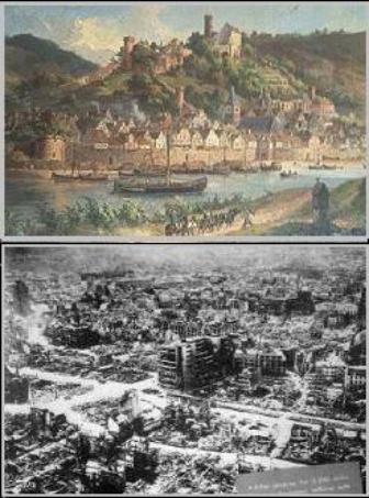 | In the old Duchy of Württenberg, the ancient German city and the capital of today's state of Baden-Württenberg is Stuttgart, founded around 950A.D. as the residence of the counts of Wurttemberg. The name of the royal family of Württenberg and of the state originates from a steep Stuttgart hill, formerly known as Wirtemberg. After Napoleon dissolved the Holy Roman Empire, the dukes of Württemberg earned the title of kings and Stuttgart became a royal residence. Swabia was the birthplace of Kepler and Schiller, and home to hundreds of priceless architectural gems such as the old castle of the Dukes of Württemberg and the Stiftskirche, a Gothic cathedral from 1495 and It was also the burial place of nobles. Mergenthaler Duke Eberhard Götz Stuttgart is another city totally flattened by continuous Allied bombing, the worst raid taking place April 22, 1945. Stuttgart was bombed 53 times by the Allies, killing thousands of people. Although an important industrial and rail center, most targets were non-military, and purely cultural sites earmaked beforehand for destruction. Bombing attacks leveled 60% of Stuttgart's buildings and left 52.972 million cubic feet of rubble. None of its landmarks or historic structures survived intact. The lovely city was now nothing but rubble and death. Under initial French occupation, there was a violent spree of violence against German women and girls, with almost 2,000 rapes reported. |