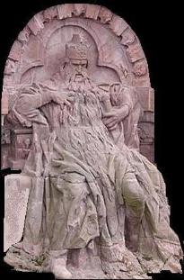 The Kaiser he is sitting Upon an ivory throne; Of marble is the table His head he resteth on. His beard it is not flaxen; Like living fire it shines, And groweth through the table Whereon his chin reclines. As in a dream he noddeth, Then wakes he, heavy-eyed, And calls, with lifted finger, A stripling to his side. |
