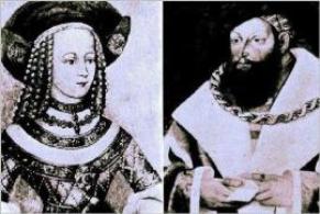 | Georg the Rich, Herzog Georg, der Reiche, Duke of Bavaria-Landshut (1455-1503) was the son of Ludwig the Rich. Georg was a strong ally of Emperor Maximilian I and supported his campaigns in Swabia, Switzerland, Geldern and Hungary. In 1475, he married Jadwiga Jagiellon (Hedwig von Polen), daughter of King Casimir IV of Poland. The wedding was negotiated in 1474 with ambassadors who had been sent to Cracow through legations and it took the 18 year old bride-to-be two months to travel with her large escort to Landshut, where she was received by princes and bishops. The Elector of Brandenburg referred to the union as divine ordinance ”for the benefit of Christendom and the Empire“. The marriage was of importance, because it was seen as a strong alliance against the Ottoman Turks. The wedding celebration in Landshut with one of the most splendid festivals of the Middle Ages. The pair were married in St. Martin's Church, and the service was officiated by non other than Salzburg Archbishop Bernhard von Rohr. Afterward, the bridal procession paraded through the Old Town to the Rathaus where the Emperor led the first dance with the bride. Ten thousand people are said to have attended the wedding where they were entertained, feted and fed by the young duke's father. At the original festival, some 320 bulls, 1,500 sheep, 1,300 lambs, 500 calves and 40,000 chickens were consumed. The detailed records of the festivities provide a historic chronicle of events. The couple had five children, three sons and two daughters. However, none of their sons outlived their father, and by Salic law in medieval Germany, their daughters could not inherit the duchy. George tried to circumvent this by bequeathing the duchy to his daughter Elizabeth and her husband Rupert, Count Palatine, but this led to a destructive war of succession after George's death. He was finally succeeded by Albert IV of Bavaria-Munich and only the new duchy of Palatinate-Neuburg passed to Rupert's sons Otto-Heinrich and Philipp. Duke Georg's father founded the University of Ingolstadt, and in 1496, Duke Georg established the Collegiurm Georgianum for poor students in the faculty of arts, and other foundations for similar purposes were subsequently made. Duke Georg also had something to do with extending Bavaria's famous beer Purity Law to the whole of Bavaria in 1516, making it the Bavarian Purity Law. The "Landshuter Hochzeit" is a festival founded in 1902 and held in Landshut every four years. The wedding of Duke Georg is reenacted and it is one of the largest historical pageants in Europe. The town citizens act as bishops, aristocrats, bride, and bridegroom at the "wedding" and it is the custom for Landshut men to let the hair grow long before the event. Every citizen of Landshut dresses in medieval garb during the festival days. Thousands of participants dress in medieval costumes and try to recapture the Late Middle Ages. There is jousting, pageantry, feasting and of course, beer.. |