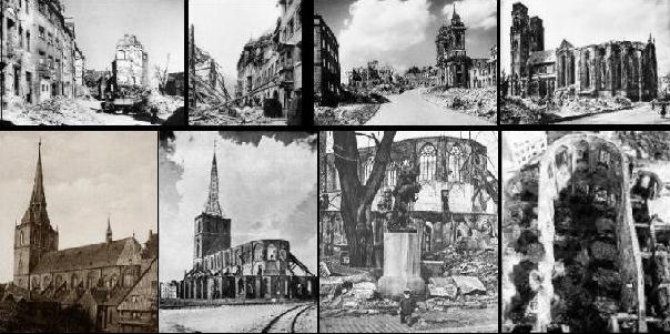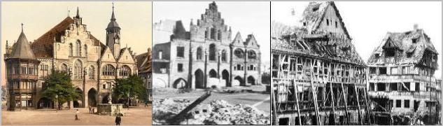 | The city center, which had retained its medieval character until then with 1,000 half timbered houses ceased to exist. The Romanesque St. Mary's Cathedral, below right, dated from the 9th century |