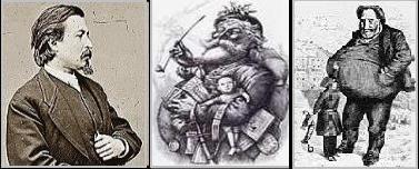 | Famous Civil War era cartoonist Thomas Nast was born in Landau, Germany on September 27, 1840 to a politically radical musician father. The family emigrated to New York. Young Thomas found it difficult adjusting to a new language and to school in America. At 12, he left public school for art school, but he had to quit art school at age fifteen and seek employment. Nast was determined to work for Frank Leslie's Illustrated Newspaper and when he was turned down, he waited in the offices of the magazine, slipped past a secretary and marched into Leslie's office. Leslie flippantly sent Nast on "assignment" at the Christopher Street Ferry house in lower Manhattan during the rush hour to draw a picture of the crowd boarding the ferry. Nast stunned him when he returned early the next day with a brilliant drawing, and Nast was hired. He stayed with Leslie's for the next few years. One of the issues the magazine Harper's Weekly brought to the attention of the American public in 1858, and one which surely caught Nast's eye, was their stand supporting the immigrants' cause when other major publications of the day were siding with the State Department's non-interventionist policy. Every native born German from most of the many German States became liable at birth for mandatory military duty in Germany and German law did not permit Germans to become citizens of other nations. This posed a problem for immigrants and subsequently for the American government. The government's response initially was that they had no control or jurisdiction over this, a foreign policy, and although there was no distinction between native-born and naturalized citizens within the USA, a naturalized citizen may still have legal obligations if he returns to his native land. One of the reasons President James Madison had declared war on Britain in 1812 was in response to the impressment of American citizens into the British Navy. Many German immigrant groups were alarmed at this issue. Nast himself could not have returned to his birthplace for a visit. Harper's Weekly bravely urged the Buchanan administration or Congress to place an embargo on German imports until U.S. citizenship was recognized in the German states. Secretary Cass reversed the State Department's policy. The specific case involved Christian Ernst, who had emigrated from Hanover when he was 10 years old. In February 1858, he became a US citizen, and when he took visited Hanover in the following month, he was conscripted into the Hanover army ands forced to leave his family and business behind to suffer in the USA. Cass sent a dispatch on July 8, 1859 demanding Ernst's release, and the Hanoverian government complied. By doing this, the law of the land on this issue became clear: naturalized citizens had "all the rights, privileges, and immunities which belong to a native-born citizen, in their full extent ... both at home and abroad." Thomas Nast couldn't read. He suffered from a learning disability and had to rely on others to read for him, at first family members and, after he became wealthy, scholars who were hired to read the great books to him. Nast obtained a full-time position with Harper's Weekly in 1862. His cartoons reflected his disgust at slavery and during the Civil War they were a dynamic and profound influence on the nation. Nast did 55 engravings for Harper's between 1862 and 1865 and gained wide recognition. After the war, he plunged into the political spectrum and his work inspired the development of the political caricature: it is due to Nast that a donkey and an elephant became the symbols of the democrats and republicans and Uncle Sam was born. Thomas Nast is also credited with creating our popular image of Santa Claus. His Santa illustrations appeared in Harper's Weekly in the 1860s and brought a more Germanic Christmas to America. Nast produce 76 Christmas engravings. Christmas had been observed in Europe for centuries on December 6. When Nast's Santa Claus gained popularity, Christmas Day was legally established as December 25 in the United States. In September 1869, Nast took on William Tweed, a corrupt political leader of New York City, and his cartoon campaign in Harper's resulted in the magazine losing valuable city contracts. Nast was even offered a bribe of $500,000 to end his haranguing but Nast refused and eventually Tweed was arrested and imprisoned for corruption. "I don't give a straw for newspaper articles," Tweed had said of Nast, "Most of my voters can't read. But they can't help seeing them damned pictures." Nast brought the Civil War to life for millions of people all over the world, and his work is probably the greatest representation of the thoughts and feelings of his era. He attacked both democrats and republicans, and at one time or another belonged to both parties. He later went after trade unions, the Catholic church and a variety of other unpopular issues, and by the 1880s Nast lost some popularity. He had a disagreement with the owners of Harper's and quit in 1886 to start his own journal, Nast's Weekly, but it failed and he was left with heavy debts. Combined with other bad investments, he got into severe financial trouble. Nast's cartoon work began to dry up and in 1902, but he was helped out by President Theodore Roosevelt who appointed him as the American consul in Ecuador. Nast died from yellow fever on December 7, 1902. |