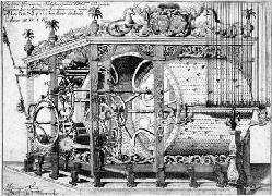Above left: the "Salzburg Stier" barrel organ from 1502 is the last example of Gothic organ construction to survive and the oldest automated musical instrument played daily in the world. Right: Engravings by Christoph Lederwasch of the Salzburger Glockenspiel (click) |