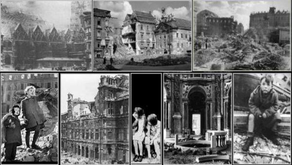 | Old Vienna sustained over 1,800 bomb hits until the major destructive assault in February and March of 1945 by the US and British air fleets, with the Soviets circling overhead, waiting to plaster red flags over it all. 80,000 tons of bombs were dropped. Approximately 30,000 humans were killed and more than 12,000 buildings were destroyed. |