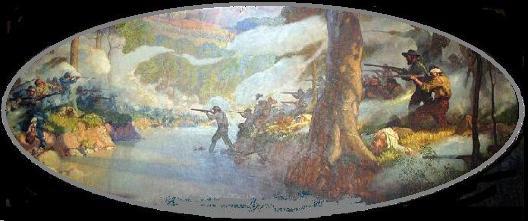 | Lyon and his men moved into position undetected at night and surprised the Confederates on the dawn of August 10 at Wilson's Creek, a few miles south of Springfield . As Lyon was directing his badly outnumbered troops on foot while leading his horse, he was shot in the leg and his horse was killed. Later, he was struck again and grazed on the right side of his head. He staggered to the rear and reformed for a second assault which he decided to lead himself. Borrowing another horse, he led the 2nd Kansas to the fight, but he was hit in the chest, fell from his horse and died. The command was taken over by Major Samuel D. Sturgis, and the Confederates under General Price mounted another assault upon them, but were repulsed for a third time and fell back to regroup, Major Sturgis ordered a fast retreat to Springfield. The exhausted Confederates ordered no pursuit and the battle ended, and it had been much bloodier than expected. In six hours of fighting, the Federals suffered 1,317 killed, wounded and missing and the Confederate/Missourian/Arkansan lost 1,230. News of General Lyon's death and the Battle of Wilson's Creek spread across the country. In October, Governor Claiborne hosted a rump convention that passed out an ordinance of secession. Wilson's Creek gave the Confederates control of southwestern Missouri. Nathaniel Lyon has the distinction of being the first Union general to die in the Civil War. His body was mistakenly (?) left behind on the battlefield at Wilson's Creek where it was discovered by Confederate forces who identified it by the thick red whiskers and "matted hair". Eventually the remains made their way back to Connecticut. Lyon left behind a state torn in two. Governor Jackson did not have to witness the future carnage of the war. In late 1862, Jackson died from cancer at age 56 in Arkansas. 31,000 Germans from Missouri went on to serve in the Union Army. There are no figures for those who fought for the confederacy. Although some historians have called Lyon the "Savior of Missouri", his unprofessional leadership, his inability to compromise with those who wanted neutrality and his poor decisions caused tens of thousands of Missouri men to enter battle and die, cost millions of dollars in property damage and left countless homeless or uprooted families. He and his cohorts took a neutral state and turned it into a state divided. Consequently, Missouri hosted the 3rd most battles in the Civil War. |