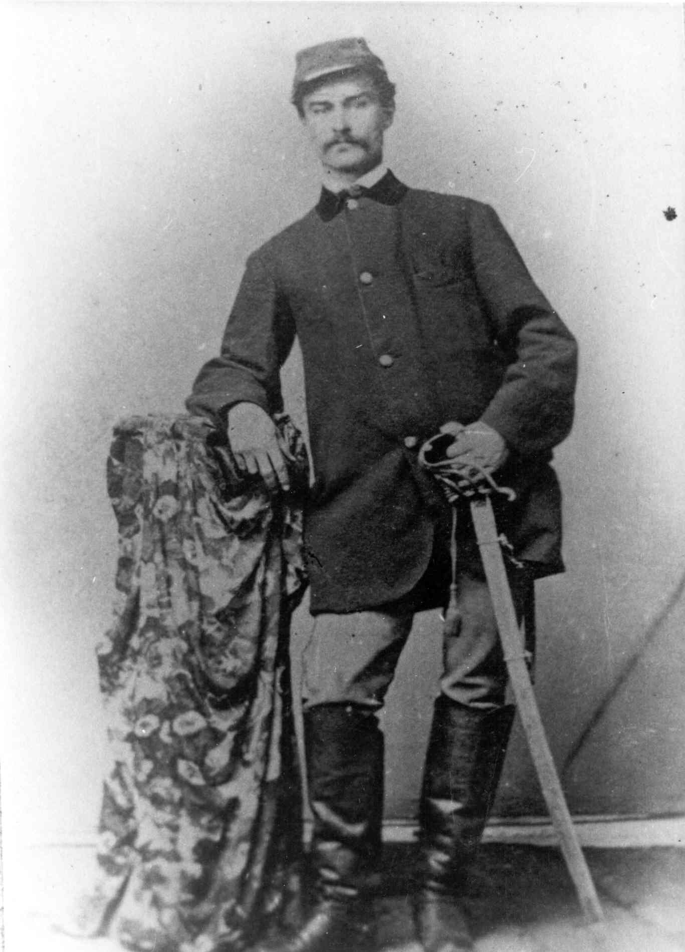 | Hubert Anton Casimir Dilger, 1836-1911, was noted as one of the finest artillerist in the Army of the Potomac. He was born in Germany's Black Forest and educated at Karlsruhe Military Academy, after which he served as a lieutenant in the Grand Duke's Horse Artillery where he developed new theories on artillery tactics and drill. When the American Civil War broke out, Dilger sailed to the United States and took up residence in Ohio where he became the captain of Battery I, 1st Ohio Light Artillery. Nicknamed "Leatherbreeches" for the doeskin German-style britches he wore, he turned his Ohio battery into a well-oiled fighting unit. He fought at several battles of the Army of the Potomac, including the Second Battle of Bull Run. |