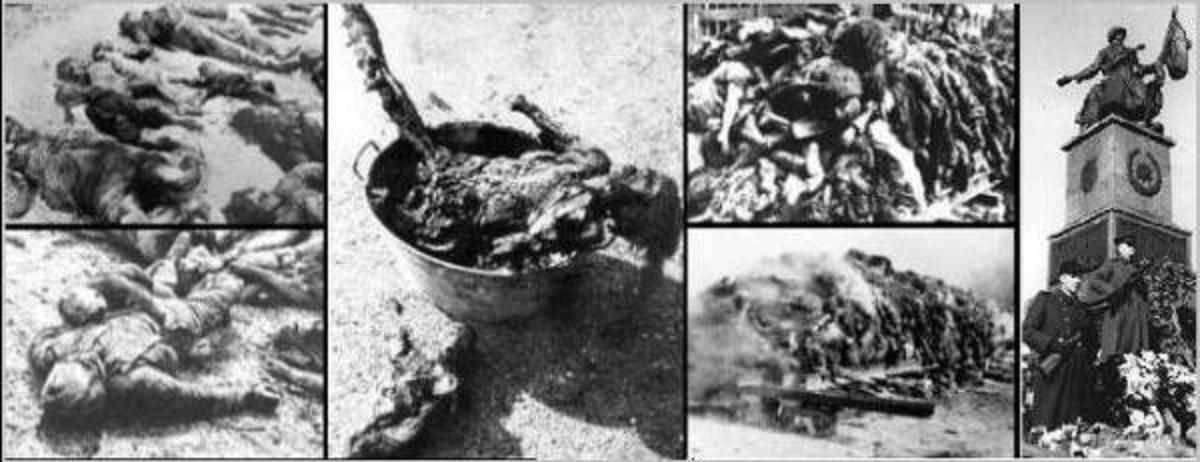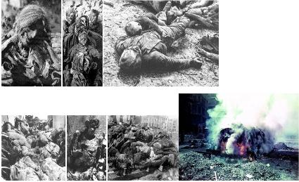 | With her reputation of grandeur and magnificence, the destruction of Dresden brought more attention than the scores of other German cities and towns that were erased by Allied bombs. Dresden burned for five days. There were so many bodies they were hauled to huge funeral pyres throughout the city and burned. Accounts of the hellish scenes after such fire bombings are sickening: the human loss was catastrophic, the deaths gruesome and the carnage inflicted upon non-combatant civilians was of horrible proportion. Thousands of remains were thoroughly incinerated, while others were so shrunken in size that several bodies at one time fit into a wagon or wheelbarrow. There were bodies and parts of bodies everywhere: in cellars, in the river and in huge mounds on all roads leading out of the city where panicked people tried to escape and were blown apart or fried to the pavement. Allied bombing was fiercest at the end of the war, when Germany's defeat was clearly imminent and her defenses minimal at best. 800 RAF Bombers dropped their Valentines upon the core of Dresden in the form of 650,000 incendiaries, 8,000 lbs of high explosives and hundreds of 4,000 lb bombs in two waves of attack, facing little anti-aircraft fire. RAF crews reported smoke rising to a height of 15,000 feet and the fires could be seen from a distance of 500 miles away. The Americans sent in 450 B-17 Flying Fortress long-range bombers the next day on the still burning city, a city of questionable military importance. The British dropped 2,656 tons of bombs, of which 75% were incendiaries unquestionably calculated to spark a massive firestorm and cause a cataclysmic loss of civilian life. The Americans then polished off what was left with 771 tons of bombs. The exact death toll will never be known. Not only was Dresden teeming with thousands of refugees who had fled into the city from the eastern regions seeking protection and shelter, but all body counts were immediately suspended when the Red Army seized the city. Yet, bombing apologists regularly refer the Dresden atrocity as a "debate" and relentlessly deflate the death toll as if that is somehow the issue, whether 100,000 human beings were killed or a "mere" 40,000. Unwilling to assign moral accountability for that which by any other measure would be viewed as a blatantly criminal act, they have led us to believe that not only was it militarily justified, but that its perpetrators and architects were heroes. They claim the moral high ground on the premise that the cold blooded murder of thousands of innocent women and children was, in a warped interpretation of collective guilt, something the victims "brought on by themselves" and therefore legitimate. But what of their own? In the insanity of the Allied terror bombing of Germany, not only were hundreds of thousands of innocent civilians killed, 26,000 American airmen out of the 350,000 who served of the US Eighth Air Force were killed, 18,000 wounded, and over 23,000 became POWs. In the British Bomber Command, 55,573 aircrew were killed out of a total of 125,000 who served, a 44.4 per cent death rate. A further 8,403 were wounded and 9,838 captured. Hundreds and hundreds of bombers were left with devastating emotional scars, haunted by their own sense of moral right and wrong and from that small, still voice in their heads begging in vain for mercy. The Soviet Memorial in Dresden, below, far right, was built inaugurated in November 1945. It says: "Eternal glory to the warriors of the Red Army in the battles against the German fascists. Conquered for the liberty and independence of the fallen Soviet homeland." After bombing, the charred and rotting and stinking hulk of Dresden was sent into communist slavery for decades. Between May, 1945, when the Soviet army first occupied the 18 million cubic metres of rubble which was once Dresden, and unification in 1990, the once romantic city of Dresden was redesigned and reconstituted as a "model socialist city" with its grim, grey streets arranged to keep industrial chimneys in sight. Wide streets and squares were cut into the landscape and "Socialist Realist" structures took the place of the destroyed Baroque wonders in central public spaces. Even today, well over a half a century later, bits and pieces of human remains are still occasionally found in unlikely places. |