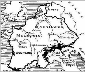 | Above: Charles Martel; The kingdom of Austrasia; Franconia today, right |