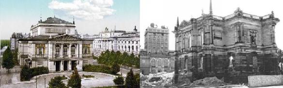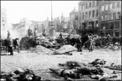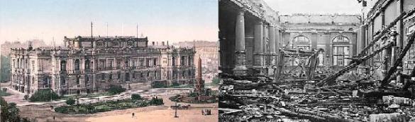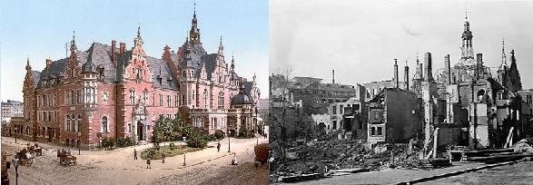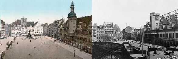 | Between August, 1942 and April, 1945 altogether 24 air raids were flown against Leipzig, and they cost over 5,000 civilian lives, yet a small number in comparison to most German cities. However, this figure was probably grossly underestimated and it did not include thousands of refugees. In the worst attack, the RAF opted to use the lethal mix of 50% high explosive and 50% incendiaries. The “bomber stream” of over 500 aircraft menaced the sky, dropping 90,000 staff incendiary bombs and over 1,000 liquid incendiary bombs. 5,000 fires erupted at once, mostly in the city center and the historical old part of town, making it impossible to control. The major roads were made impassable. The entire historic city center burned. An attack by over 400 US bombers polished off what was left of the city, any surviving cultural facilities as well as hospitals and science enterprises, the esteemed Leipzig university and 78 clinic and hospital buildings, the oldest theatre Schauspielhaus, the famous crystal palace, the municipal library as well as 17 Leipzig school buildings. The entire ancient book center was lost. But it was not over yet. Even though the city was in its last gasps, 820 RAF bombers decided to paw at the dead mouse of a city in another attack. Knowing that refugees from the east had since fled there in panic and fear, the Americans joined in with 2,000 bombers. On February 27,1945, over 700 American B-17 bombers attacked again, and yet again on April 6th and 8th. The British then pounced again on the easy prey, on April 10,1945 with 230 bombers,and on April 11 with 95 bombers. One fifth of the native inhabitants, over 140,000 humans, were homeless and shocked, and along with confused refugees were all ripe for the Soviet domination the Allies had planned. Of 221,178 dwellings, 28,178 were completely destroyed and 93,000 were damaged, thus 20 per cent of the native Leipzig inhabitants had become homeless. Over 4,000 non residential buildings were destroyed by the last attacks as well, among them fifty six schools, several hospitals, nine churches, several theatres, the art museum, and the main building of the university. The city hall and the historical museums were heavily damaged, the historic houses from the middle ages lost. More than three quarters of the historic printing district with its printing and publishing houses, bookshops and book and the book museum, were wholly obliterated. The city famous for its book arts lay in ruins. Over 50,000 books and rare manuscripts burned. On April 18,1945, units of the US army took over and "liberated" the city just long enough to hand it over to the Soviets, horrifying the entrapped local citizens and the refugees who had just fled from the Soviet invasions in the east. |