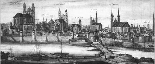 | Magdeburg in 1900, above, in 1639 at top and in 1945, below |