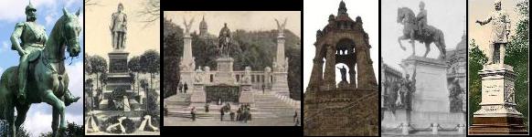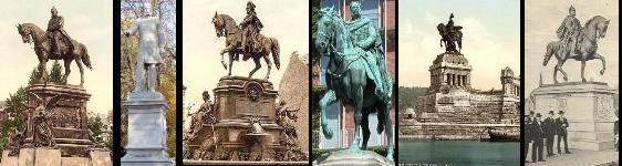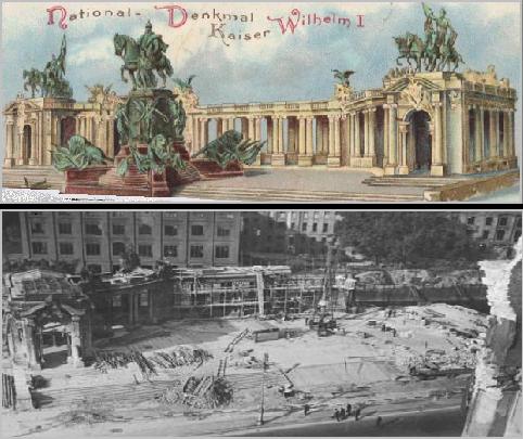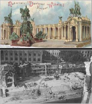 | All across Germany there were grand monuments. Some were destroyed by bombs, some were melted for scrap and some were intentionally demolished during the "re-education" policies under the occupying Allies after World War Two or under communist indoctrination policies in Soviet areas of occupation. There were, for example, monuments to Kaiser Wilhelm I of Prussia, founder of the German empire, all over the land. In March, 1888, fifteen days after the death of the Kaiser Wilhelm I of Prussia, who was proclaimed German Emperor in Versailles in 1871, the Imperial Diet unanimously voted to erect a memorial to the memory of the much respected and beloved founder of the German empire. In June of 1894, construction began at a cost of four million gold marks. The number of animals on the monument prompted many contemporary jokes. It included a menagerie of 157 animals: 21 horses, 2 oxen, 8 sheep, 4 lions, 16 bats, 6 mice, 10 pigeons, 2 ravens, 2 eagles, 16 owls,1 Kingfisher, 32 lizards, 18 snakes, 1 carp, 1 frog and 16 crabs. The center of the magnificent 21-meter high monument was the 9-meter-high equestrian statue of the Emperor accompanied by a female god of peace. Victory goddesses floated on the four corners of the bronze pedestal and the floor of the hall was covered with a beautiful mosaic floor. On the ledge of the front, four characters groups sculpted by various artists embodied the kingdoms of Prussia, Bavaria, Saxony and Wuerttemberg. The four groups on the reverse side were trade and shipping, art, science and agriculture and commercial diligence. Ceremonies took place all over Germany in March of 1897. Later, on March 22,1900, Kaiser Wilhelm II, his wife, and rulers or representatives of all the German States dedicated the new monument in Berlin. There was immense popular enthusiasm. The monument was built with a throne and red carpeted staircases, complete with a magnificent canopy edged in golden braids which was reserved for the dowager Empress ( the daughter of Queen Victoria of England and mother to Kaiser Wilhelm II ), the Prussian princesses and German rulers. A hundred Prussian and imperial deputies stood on the platform of the memorial among brilliantly uniformed officers. The Kaiser and his aides-de-camp and generals rode along of the troop line in the Unter den Linden to the tunes of military marches. When the empresses appeared in the imperial pavilion, the Kaiser gave the command for the drums and trumpets to play and for the singing of the favorite hymn of Wilhelm II: "Wir treten zum Beten von Gott dem Gerechten" (We are going to pray God the Just). A Lutheran pastor issued a prayer of consecration for the sixty-five foot monument and when he was finished the Kaiser drew his sword, made troops present arms, and cut the veil covering the statue while they all saluted. The statue, in bronze, represented Wilhelm I in full Prussian dress with a spiked-helmet. " To Wilhelm the Great, King of Prussia, 1861-1888 " was inscribed upon the monument along with: "Acknowledgement and faithful affection - the German people". The Kaiser remained on horseback for a time after the veil had been removed, while drums were beating, troops were cheering and military music playing "Heil dir im Siegerkranz". At the same time, a hundred and one cannon-shots was fired and all city bells rang out in pride. Afterward, there was a lush banquet where Kaiser Wilhelm II made a speech praising his father and recalling the suffering of Germany beforehand while under the French yoke. The monument miraculously survived relatively unscathed from the War and stood until 1949. However, the Communist Party felt the need to destroy this evidence of Germany's past and in December 1949, began dismantling the Monument. Some parts of it were parceled out. A pair of lions pose in front of the zoo with no explanation as to their origins and an eagle from the monument stands in the courtyard of a museum. Although in 2004, some 5 million euros were used for the Soviet war memorial in Berlin-Treptow, there were never been plans to rebuilt the monument. In 2007, the German Bundestag decided to erect a monument "to freedom and unity of Germany" on the base of the former monument. |