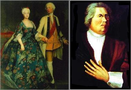 Friedrich I (1657-1713) was the first King of Prussia, and he modelled himself after luxury-loving Louis XIV of France. He consequently left Prussia's finances in a state of disaster. When his son Friedrich Wilhelm took the throne in 1713, he vowed to do things differently. Immediately, he took steps to drastically reduce royal expenses and he himself led a frugal, almost Spartan life. He worked tirelessly on the behalf of his people, drawing up manuals in great detail to guide the farmers in the correct way to store grain and in new methods of ploughing, to teach hunters how to kill predatory animals and to show workingmen how to erect earthworks as a protection against flooding. He detested idleness and told market women to knit stockings during idle hours at their stalls. He loathed extravagance and chided those who wore "extravagant finery". He hated waste, even of time, and threatened to fine any minister who preached for over one hour. Prussia's highly disciplined army can be credited to the excellent quality of its officers. The King did not sell commissions, as was the tradition, but awarded them only according to merit. With the guidance and help of soldier-strategist Prince Leopold of Anhalt-Dessau (1676-1747), the remarkable monarch Friedrich saw to it that one in every nine men in Prussia was a soldier and another 40,000 men were foreign mercenaries. Prince Leopold of Anhalt-Dessau was born in Dessau, the only surviving son of John George II, Prince of Anhalt-Dessau and Princess Henriette Catherine of Orange. He was devoted to military ideals and educated himself physically and mentally, becoming colonel of a Prussian regiment in 1693, the same year he became a Prince. In 1698, he married an apothecary's daughter against his mother's wishes, and their marriage was long and happy. She played an active roll in military affairs and sometimes accompanied him into the field. At the end of his life, however, he had two illegitimate sons by one Sophie Eleonore Söldner (1710 - 1779), the first of whom was a great-great- grandfather of the future Manfred von Richthofen. Friedrich Wilhelm's first love was Caroline of Brandenburg-Ansbach (1683-1737), but she was older and the feelings were not mutual, and she ended up marrying his detested Hannoverian cousin, George II of Great-Britain (1683-1760). |