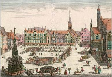 | From its beginning, Nürnberg was a civilized city conducive to creative thinking, with an atmosphere in which great minds flourished. Barbarossa himself built an imperial castle here adjoining an old castle of the once mighty Burgraves, wealthy imperial officials who for a very long time had exercised jurisdiction in all civil, judicial and military matters. Their power began to wane after 1062 when Heinrich IV gave the city the right to hold a fair and coin money, but the Burgraves were not easily budged. The emperors of the twelfth century then took over the administration of the imperial possessions and installed a castellan, or overseer, in the imperial castle who not only administered the imperial lands surrounding Nürnberg, but levied taxes and constituted the highest judicial court in matters relating to poaching and forestry. The strained relations between the old burgraves and the castellan evolved into hostility. Friedrich II presented a charter freeing the city from all authority excepting that of the emperor himself in 1219, and Nürnberg became a free imperial city. Since the middle of the thirteenth century, its administration was entrusted to a council which became more and more independent, and in 1320, it was invested by Ludwig the Bavarian with supreme jurisdiction. This accumulation of rights and privileges made the power of the council equal to that of the sovereign or territorial lords and, with their acquisition of the imperial forest near Nürnberg, a basis for future development was laid. The members of the council were chosen by the people, usually from the wealthier class; this custom led to a circle of "favorites," which artisan class resented. With the increasing importance of handicraft, the artisians became determined to have a voice in the city government. In 1349, the members of the trade unions unsuccessfully rebelled against the patricians. Their unions were then dissolved, and the oligarchic element remained in power. Nürnberg had become wonderfully developed at the beginning of the 14th century. Karl IV conferred upon it the right to conclude alliances independently, thereby placing it upon a politically equal footing with the princes of the empire. The city protected itself from hostile attacks by a wall. After the old castle was destroyed by fire in 1420 during a feud with the Burgraves, the ruins and the castle's forest ands properties were ceded to the city by Emperor Sigismund in 1422 and then purchased by the city. Nürnberg became master of all within her walls with this and other purchases, and the city accumulated considerable territory.In 1431, the population of about 22,800 was reduced to 20,800 in 1450 due to wars and plague. The war of succession in Landshut at the beginning of the 16th century brought new possessions to Nürnberg until it owned more than any imperial free city and, along with its political importance, its industrial power and superior culture, it became known as the "Empire's Treasure Box." By the middle of the sixteenth century, the city was almost completely Protestant. The Diet of Nürnberg, 1532, gave religious freedom to all and remained neutral in foreign affairs. A Meistersinger was a German lyric poet of the 14th, 15th and 16th centuries, who carried on and developed the traditions of the medieval Minnesingers. Hans Sachs of Nürnberg was the most famous of all. The Meistersinger school had spread all over south and central Germany. Each guild numbered various classes of members, ranging from beginners to a master, being a poet who was not merely able to write new verses to existing melodies but had himself invented a new melody. The poem was known as a Bar or Gesetz, the melody as a Ton or Weis. The songs were sung in schools without accompaniment. The rules of the art were set down in the Tabulatur, the law-book of the guild. Meetings took place either in the Rathaus, or on Sunday in the church, and at Easter, Pentecost and Christmas. Special festivals and competitions were instituted. The Meister singers played a huge role in the life of 15th and 16th century German towns The forthright Meistersinger poetry reflected the values of the German burger, his good sense and honesty. In this respect, it was an important factor in the rise of that middle class literature. The Meistergesang reached its highest point in the 16th century, and it lingered in south German towns even as late as the 19th century. The art of the Meistersingers has beer immortalized by Hans Sachs, a shoemaker of Nürnberg and Sach's work was immortalized by Wagner. The city also contributed much to the science of astronomy. In 1471, Johannes Mueller built an astronomical observatory in Nürnberg and published many important astronomical charts. In 1515, artist Albrecht Durer, a native of Nürnberg, mapped the stars of the northern and southern hemispheres, producing the first printed star charts. Durer also published the Stabiussche 'Weltkarte', the first perspective reproduction of the terrestrial globe. The main part of Copernicus' work was published in Nürnberg in 1543. Hans Tucher invented the compass. Great masters thrived in Nürnberg's creative environment. Adam Krafft, sculptor, Viet Stoss with his intricate wood carving, and Peter Vischer, master of bronze, were among the best artisans in the world and they left an indelible imprint on the city. A city of music and song, even the musical instruments were superior in detail. Nürnberg was known for its beautiful workmanship and objects of fine quality. |