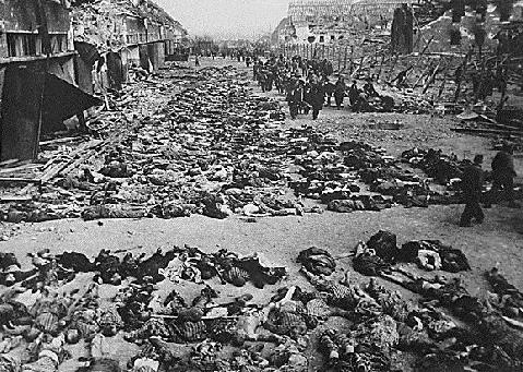 | On August 24, 1944, 11 B-17 Flying Fortresses of Mission 568 bombed Nordhausen as a "target of opportunity". The British repeatedly struck the 1,000 year old town of Nordhausen, murdering around 8,800 civilians. by the time of an attack on April 3 and 4, 1945, three-quarters of the town was destroyed. The Mittelbau-Dora work camp which was located on the outskirts of town to provide labor for the Mittelwerk V-2 rocket factory in the Kohnstein was bombed purportedly because its hangers and cenemt structures were "mistaken for a German munitions depot" by the US. This bombing killed thousands of inmates which were later erroneously reported as being killed by Germans. The US Army rounded up local 400 German civilians living in the area at gunpoint and forced them to "evacuate" the corpses. 20% of Nordhausen's civilian population was killed by Allied bombing before the US Army gave it to the communists. |