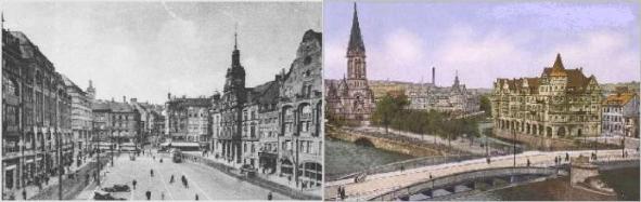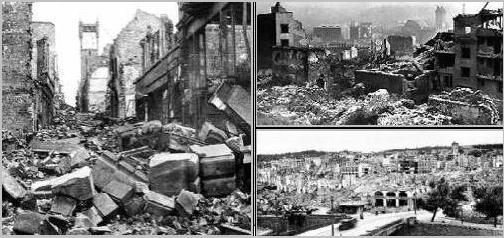 The first surprise Allied air raid by Americans which took place over the city on April 1, 1944 killed 95 civilians. Then, based on a faulty RAF bomber command report of June, 1944 which erroneously stated that Pforzheim was "one of the centers of the German jewellery and watch making trade and is therefore 'likely' to have become of considerable importance into the production of precision instruments" and an Allied report issued in August, 1944 which continued (on the basis of British reports and without further evidence) to exaggerate the rumor that "almost every house in this town centre is a small workshop", an attack on the city was suggested to destroy the "built-up area (meaning the civilian residential center of town), the associated industries and rail facilities". The RAF carried out constant night time nuisance raids on cities like Pforzheim to disturb the civilian population: making them run to shelters, jump from their sleep, grab for their children, get the old folks into wheel chairs and secure pets, the essence of terror bombing. On October 3, October 4 and October 5, 1944 there were raids on Pforzheim, and another three in October and one in November. Also, in that November, Pforzheim was officially placed on a target list. With its medieval city center, it was said to be especially ripe for the devastating firestorms that the RAF had perfected. The astronomical attack that destroyed yet another medieval city center occurred on the evening of February 23, 1945. The first bombs were dropped at almost 8 pm and the last at a little past 9 pm. The attack on the clockmakers of Pforzheim included 379 aircraft, and they attacked from a height of 8,000 feet, dropping a half a million high explosive and phosphorus incendiary bombs, with a weight of 1,825 tons. A firestorm immediately enveloped the heart of the town in complete devastation. The bombed gas works added fuel to the fire. The smoke over the town was so high that returning bomber crews could see the glare of the fire 160 kilometers away. In an area about 3 kilometers long and 1.5 kilometers wide, all buildings were reduced to rubble. 17,600 citizens, or one out of three Pforzheimers, were officially counted as dead and thousands were injured. Some died instantly from the impact of explosions, many from burns due to the hellish burning phosphorus that seeped into the cellars of houses where they hid, and others suffocated from lack of oxygen and poisonous gases or were crushed to death by collapsing walls. Many drowned in the river into which they had jumped, trying in vain to escape from the burning materials in the streets, but even the rivers were burning as the phosphorous material floated on the water. The phosphorous bombs formed a burning gel which water, while extinguishing normal fires, didn't squelch. The gel would reignite instantly when the victim reemerged, giving them a choice between drowning or burning to death, and some people drowned themselves and/or their burning children to end their suffering. Its victims slowly perished as well when blankets thrown over them to smother the fire caught fire themselves, adding another coating of flame. If it landed on the hair, the victim's whole head caught fire, and people in these attacks were seen running like human torches until they mercifully expired. The vivid and horrifying accounts of its use and its victims were for the most part ordered stricken from the U.S. Military records, but a copy of the U.S. Strategic Bombing Survey does admit that: "Phosphorous burns were not infrequent" at the tail end of the war on the Americans' part. The USA in fact supplied the deadly phosphorus to the British. The British, from the beginning, justified its use because it "depressed the morale of the German people." After the attack, 30,000 stunned, frantic, heartbroken and half insane people had to be taken care of, doctored and fed, and their facilities were all gone. 90% of the buildings in the city center had been destroyed. Many citizens were buried in mass graves at Pforzheim's main cemetery because they were burned beyond recognition. In the days following the attack, more and more died in pain and suffering. There are many graves of complete families. The inner city was completely depopulated. Even after the small city was in her last gasps following the utter holocaust it suffered, there were additional attacks on Pforzheim. On March 4, the USA bombed the area around the Kupferhammer and flew low, opening fire on crowds of civilian citizens, murdering 100 more people. To justify the slaughter, the people of Pforzheim have been told, well after the fact, that their city "had to be bombed because fuses for German bombs were being made there," but it was not until March 14, 16, 18, 19, 20 and 24, that the railway facilities were bombed and the local section of the Autobahn was destroyed! In any case, the war was basically over at the point in time when small Pforzheim was incinerated. And if there was any honest, actual evidence that all of the folks here were making bomb fuses in their houses, it surfaced long after the murderous rage was inflicted upon a civilian population in what, by any other standard, would be considered a war crime. The April 8, 1945 headlines read: "US Seventh Army captures Pforzheim." Like other bombed German cities, a mountain was formed out of the rubble from Pforzheim's destruction. The shattered bits and pieces of an old, beautiful town were heaped into large mounds on the outskirts of the town and covered with soil and vegetation. This is the fate of a place which was the site of a Roman settlement in 90 AD and was visited by Holy Roman Emperor Heinrich IV in the year 1067. |