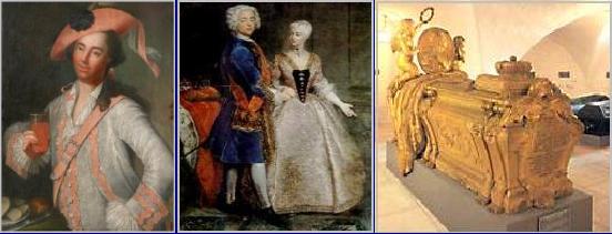 The first settler in Ansbach was named Onold, and he established himself in the Rezat Valley about 700 A.D. Around 748 A.D., the Frankish nobleman Gumbertus founded a Benedictine monastery and the settlement grew into the city of Onolzbach, which would be later be called Ansbach. The predecessor to both the margraviates of Ansbach and of Bayreuth was the Burgraviate of Nürnburg. Ansbach became a possession of the house of Hohenzollern through marriage around 1192 and Hohenzollern Burgraves from Nürnberg took control in 1331 and enlarged their territory, elevating it to princely status in 1363. The principality of Ansbach was established at the death of Burgrave Friedrich V of Nürnberg in January, 1398. His lands in the Burgraviate of Nürnberg were partitioned into two margraviates which were split between his two sons and from then on granted to collateral branches of the house of Hohenzollern in Brandenburg. The German king Sigismund pledged the Margraviate of Brandenburg to the younger son, Burgrave Friedrich VI who thence became Elector Friedrich I of Brandenburg in 1415 and received Ansbach, while the elder son, Johann III, received Bayreuth. After Johann III's death in 1420, the two principalities were reunited under Friedrich VI. Upon his death in 1440, his territories were divided between his sons; Johann received Bayreuth (Brandenburg- Kulmbach), Friedrich received Brandenburg and Albert received Ansbach. Thereafter Ansbach was held by cadet branches of the House of Hohenzollern, and its rulers were called the Margraves of Brandenburg-Ansbach. They would rule for almost 500 years. Gumbertuskirche, built in 1080, holds their Crypt. Margrave Georg the Pious supported Luther during the Reformation, and during his reign the first neoclassic houses were built. The escapades of the ruling margraves were legendary, but one especially tickles the imagination. The "Wild Margrave" of Ansbach was born Karl Wilhelm Friedrich on May 12, 1712 in Ansbach, son of Margrave Wilhelm Friedrich of Brandenburg. His uncle was King George II. of Great Britain. His mother, Mark Countess Christiane Charlotte, took over the regency after the death of his father in 1723 and provided building activity typical of the age for the adornment of the Residenzstadt, originally built around 1400 as a large hall. She brilliantly transformed the Margrave's residence "Onolzbach" (the ancient name of Anspach) and she greatly embellished the gardens in the French style and established an Orangerie. Wild Bill's wife, Friederike Luise, was born in 1714 as one of Friedrich the Great's sisters. Her father wished to expand his power in the south of the realm and married her off to another Hohenzollern, Karl Wilhelm Friedrich, . She was fifteen, and he two years older. By the connection of the two royals originating from related Hohenzollern lines, the Prussian king could influence and secure succession on the Frankish line. After his wedding, Karl Wilhelm Friedrich took over the regency of the Brandenburg Margraveship from his mother, who died on Christmas, 1729. It was a bad union for poor Friedrike. She suffered from the same debilitating disease termed "Porphyrie" which afflicted her father, and she had difficult spells in which she had severe nausea accompanied by paralyses which made her appear "dead." And that is how her husband regarded her. From the start, he found her unattractive and made no secret of his aversion toward her, with her limp and bad teeth, and she was unappealing to him in bed. All the same, she suffered repeated miscarriages and lost one son, until 1736, when she gave birth to the future Margrave, Christian Friedrich Karl Alexander. Her marriage was so miserable that she once etched into a windowpane of the palace with her diamond that she was sad yet she dare not show it. The unhappy, unloved princess spent a great deal of her time with her sister, Wilhelmine of Bayreuth. The Margrave was given to immoderation with purchases, drink, women and hunting, and he looked for comfort with the common girls...and found it often. His passion for hunting had cost the state 10% of its annual budget, and he possessed the largest falcon yard of Europe, a hobby which cost him more than one half million guldens between 1730 and 1748. He also had numerous buildings erected in Ansbach, and had the royal residence renovated by the architect Leopoldo Retty. He then established two castle buildings in Gunzenhausen. 56 new churches and parsonage buildings were developed during his reign, and between 1736 to 1738, he had Gumbertus church in Ansbach redesigned in the typical “markgräflichen" style. In 1583, the castle at the ancient crossroads at Unterschwaningen came into the possession of the Ansbach Margraves. The flowering of the village began in 1712 and lasted almost 90 years. The "Old Castle" was remodelled and briefly used as a summer residence before sitting idle for several years. Then, Countess Friederike Louise took over as mistress of the castle Schwaningen which she had rebuilt to plans drawn up by architect Leopoldo Retti. In 1733, after the birth of her son, the future margrave, the castle was given to her, and Friederike Louise spent over 40 lonely, withdrawn years of her life here devouring English and French literature. She passionately collected books of various fields of knowledge including histories of western states. Her extensive library survived and is now located in the Friedrich-Alexander University in Erlangen. Friederike Louise was very frugal and received an annual compensation sum of approximately 10 000 guilders from the royal treasury. In the year 1758, she had a new schoolhouse built for the population of Unterschwaningen, and she was regarded as a kind mistress. She never returned to live in the royal residence. Suffering from mental confusion and depression, she died February 4, 1784 and her final resting place is in the crypt of St. Gumbertus Church in Ansbach. The cellar crypt o