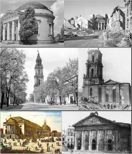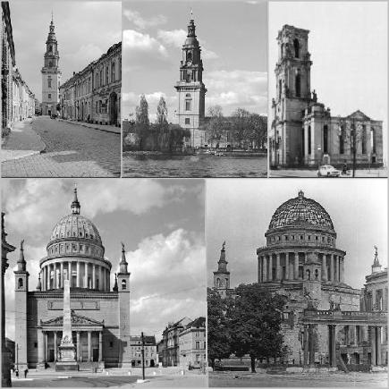 | Top: Französische Kirchethe, Garnisonkirche and St. Hedwig's Church before and after 1945 |
