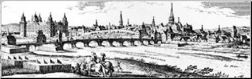 | Aschaffenburg in the 16th century, above, and in 1945, below |