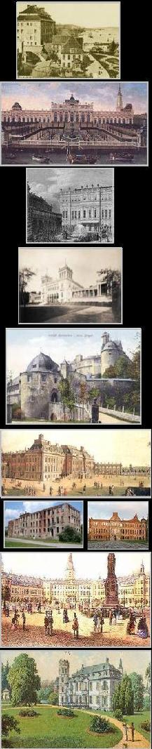 | Königsberg Schloss was bombed and then blown up by the communists. Rimburg Castle dated from 1276 and is located in Wurmtal on the German-Dutch border. Several fierce battles took place here in 1944, gravely damaging the structure. Augustusburg Schloss at Bruhl near Cologne was completed in 1298. Towards the end of the Second World War, the castle was badly damaged by shelling and looting as was the old Kadolzburg Castle in Cadolzburg in Franconia. Schloss Putbus was built in the 12th century and was owned by the family of Putbus until 1945. After World War Two and until the 1950s some renovation work took place at the castle, but then in 1959, the communist government made the decision to demolish the castle on ideological grounds. Only parts of it remain today. Black Castle, or Braunschweiger Schloss in the city center of Braunschweig was begun around 1753. The 1944 bomb attacks badly damaged it and its remains were removed in 1960. Schloss Brünninghausen in Dortmund dated from 1483 and lasted until bombing destroyed it in the Second World War. It was not rebuilt. Schloss Calbe was begun in 965. In the final days of World War II, the castle was damaged by fire and in 1951, despite the protests of the population, its remains were removed completely. Schloss Herrenhausen, Hannover, started life in 1638. It lasted 300 years until 1943, when British bombing completely destroyed it. Herzog-Max-Burg, München, was ancient, then rebuilt between 1593 to 1596. After severe war damage it was largely removed and a new building from 1954 stands in its place. Kieler Schloss, circa 1558 to 1568, was burned out by bombing in 1944 and its remains were removed after the war. Stammheimer Schloss, near Cologne was ruined by bombing in 1944 and it was not rebuilt. Palais Thurn and Taxis in Frankfurt was erected from 1729 to 1739 and fell victim to an air assault in 1944 and largely destroyed; Its remains were dismantled in 1951. Schloss Hartenstein was built in the 12th century. The remains of the Saxon castle were destroyed by American bombs on April 20, 1945 Castle Culmitzsch in Thuringia was partly demolished and blown up in 1969-1970. Residenzschloss Osterstein in Gera dating from the 12th century was burnt out in 1945 and its remnants demolished 1962. Today, only the former dungeon and a farm building and Courtyard remain. Schloss Köstritz, Bad Köstritz, Thuringia was.demolished in 1972. Schloss Dwasieden was at Sassnitz on the island of Rügen, and was built from 1873 to 1877. In 1948, the was castle blown up for ideological reasons.. Schloss Schleiz in Thuringia was owned by the Count Heinrich von Reuss in 1689 and dated from the14th century. An American bomb attack destroyed it in 1945. Schloss Monbijou, another royal palace in Berlin dating from 1649, was bombed in November 1943 and its ruins demolished in 1959. Prinz-Albrecht-Palais in Berlin was constructed from 1737 to 1739 After heavy war damage in 1944, the remains were removed in 1955. Berliner Schloss (see below) Potsdamer Stadtschloss, circa 1598, was burned out by bombing in 1945 and its remnants were blown up in 1959-1960. Schloss Neustrelitz from the early 18th century was burned out in 1945 and its ruins blown up in 1949.(see elsewhere) Schloss Dargun in Mecklenburg-Western Pomerania, circa 1172, was destroyed by arson in 1945 Schloss Putzar is the name of the ruins of two mansions in Putzar in Pomerania dating from 1306 and 1545. In the Second World War, it sheltered refugees and "resettlers" in its buildings, and was then allowed to go to ruin. Schloss Wolfshagen on Haussee between Brandenburg and Mecklenburg-Western Pomerania was built from 1776 to 1838. World War II bombing destroyed the palace and the Orangerie. The castle was completely demolished later. Schloss Zerbst castle in Saxony-Anhalt was the Royal Palace of the Prince of Anhalt-Zerbst. It was time mentioned for the first time in 1196. In the Second World War it was severely damaged by bombs in April of 1945 and it burned completely; Reconstruction of its foundation walls of the still standing castle would have been possible, but were rejected due to ideological decisions, and the west wing was blown up. Only the ruins of the east wing was preserved. The old castle in Nürnberg was among others completely devastated by bombs. Johannisburg Palace and Mannheim Palace were among the countless others that were severely injured, and the German castles in lands given to the communist governments were either destroyed or taken away from their rightful owners. Karlsruher Schloss was first constructed by Jakob Friedrich von Batzendorf. The city was planned with the tower of the palace at the centre and 32 streets radiating out from it like spokes on a wheel, giving Karlsruhe the name "fan city" (Fächerstadt). The palace was rebuilt in 1746 and it was later altered by Balthasar Neumann and Friedrich von Kesslau and again in 1785 by Wilhelm Jeremias Müller. The palace, along with most of the city, was reduced to rubble by Allied bombing. Schloß Rurich near Hückelhoven, dating in part from the 13th century, survived the immense destruction caused by "Operation Queen" on November 16, 1944 which laid waste to several nearby towns and cities only to be hit by a grenade attack on Christmas of 1944, which caused immense, and in part irreparable damage. The valuable castle library of over 18,000 volumes was thoroughly looted by American GIs |