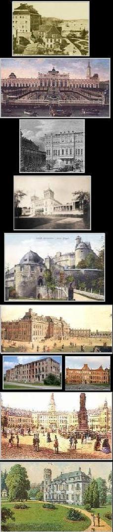 | Above, top to bottom: Schloss Putbus, Braunschweiger Schloss, Berliner Schloss, Schloss Brünninghausen, Residenzschloss Osterstein, Schloss Herrenhausen, Kieler Schloss, Schloss Monbijou, Prinz-Albrecht- Palais, Schloss Dwasieden, Potsdamer Stadtschloss, Schloss Zerbst, Schloss Dargun, Karlsruher Schloss, Schloß Rurich |