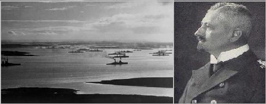 At the Armistice signed with the Allies on November 11, 1918, Germany agreed to surrender all of her warships. Over 200 U-Boats were quickly handed over. The order, however, also involved the surrender and internment of seventy-four manned warships to neutral ports, their fates to be determined later by a final peace treaty. Rear-Admiral Ludwig von Reuter was given command of this devastated captive force. |